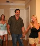 Hello There, My name is Allie and I'm a busty 25 year-old dirty talking blonde nympho on a never ending journey to get laid. Since I have an insatiable craving for cock I decided to create my own personal web site to chronicle all my sexual exploits. After seeing a lot of sexy amateur housewife type websites I said to myself, "I can do that". I'm pretty much a natural born exhibitionist anyway so this is really the perfect outlet for me. Well, let me just tell you that my pussy started to throb and got soaking wet at the very thought of exposing myself to the public via the Internet. I ran straight into my bedroom and grabbed a huge black dildo and proceeded to fuck my pussy into one of the best fucking orgasms I've ever experienced. Speaking of masturbation, I really need to get off at least 4 or 5 times a day to be completely satisfied so I'm constantly masturbating or getting fucked by a nice thick cock (or 2, or 4, or more - oops that's a different story). Anyway, I figured the members of my site would love to watch all of this hot action so I set-up a bunch of live 24/7 streaming voyeur cams all over my house. Now they can spy on me and my swinger friends anytime they're feeling a little horny. It's really cool because you never know what you may end up seeing. You may drop in on me right in the middle of one of my famous orgy parties or you may stop by just in time to see me taking a huge facial cum shot from one of my favorite cocks. I guess you probably would like to know the story behind these erotic photos of mine so, here ya go..... These pics are from a photo set that I've titled: "MY FIRST DATE WITH BRANDI AND MICHAEL". You know how I love threesomes and this was definitely one of the hottest I've ever had. I normally prefer boy-boy-girl threesomes because there's nothing that can compare to having my pussy serviced by two hard cocks, well except maybe three hard cocks but that's a whole different story. Anyway, Jake and I got together with Brandi and her husband Michael for an evening of fucking when our husbands were confronted with the dreaded coin toss. I want to share all my sexual adventures with you guys so that means someone is always left out of the action to run the camera. Jake's been on a winning streak lately and I was actually beginning to think that he had a two sided coin or something. Unfortunately for Jake his luck ran out this night. His misfortune worked in my favor because I got to fuck some new cock. And let me tell you Michael's prick is nice and thick! I know I seem to mention this quite a bit but I feel so lucky to have a partner that is into the swinging lifestyle and gets off seeing me fuck other men. We often talk about what's hotter, actually fucking someone else or watching each other fuck someone else. We're still undecided on that point! So, back to Brandi and Michael. This night was the first time I had ever hooked up with these two hotties. As you can see from the pictures she has the body of a goddess. I don't know how much time she spends at the gym everyday but one thing is certain, it has definitely paid off for her. Brandi was a real sport offering to share her husband with me although I could tell she was a little disappointed that Jake lost the coin toss. I'm sure I'll have an opportunity to get the two of them together very soon. Jake's been telling me how he's just dying to fuck her ever since that night. Brandi and I have been talking on the phone about her and Michael coming out for a visit so maybe next time I'll run the camera while Jake and Michael fuck Brandi or maybe Michael can run the camera and Jake can have Brandi and I all to himself. Yeah now that sounds like a plan for sure! Ok so once we got back to our room that night we didn't waste any time at all on small talk. We headed straight for the bed where Brandi and I proceeded to molest her hubby. Of course he wasn't putting up any resistance to our advances as we stripped him naked in a matter of seconds. We dropped to our knees and began to give Michael a proper oral servicing. Brandi was the first to wrap her lips around his thick piece of meat as I sucked and licked his balls patiently waiting for my turn on his shaft. When she released his cock from her mouth I quickly swallowed him whole. I was sucking him for all I was worth hoping for a taste of his potent seed. Michael grabbed the back of my head quickly pulling his cock from my mouth as he said, "Easy tiger, if you do that much longer you'll end up making me cum and then I may not get a chance to fuck you tonight." No chance of that happening because I immediately stopped sucking him off. Once I've had a man's cock in my mouth I definitely need to feel it inside my pussy. Especially one with the thickness of Michael's. I just couldn't wait to feel him stretching my cunt wide open with his tool. I think that's exactly what he had in mind too because he sat down on the edge of the bed and started to strip me out of my clothes. His gorgeous wife lent a hand and the next thing I know I was buck naked, flat on my back with Michael's face buried between my legs warming up my pussy. Wow, this guy really knew what he was doing as he explored my soaking wet hole with his expert mouth. He sucked on my pussy lips, licked my clit and then shoved his tongue so far up my love canal that he practically reached my g-spot! I knew it wouldn't be long before he made me cum. And just a few minutes later that's exactly what I did, I came all over Michael's face. As I thrust my hips up into his mouth he pushed back with equal resistance and continued lapping away at the juices flowing from my pussy. When Brandi heard me cumming she wanted in on the action too! She slid out from beneath Michael's legs where she had been sucking him off and jumped up onto the bed. She then straddled his legs and squatted down onto his cock. I repositioned myself so that I was sitting on her husband's face as he continued to give my pussy a good tongue